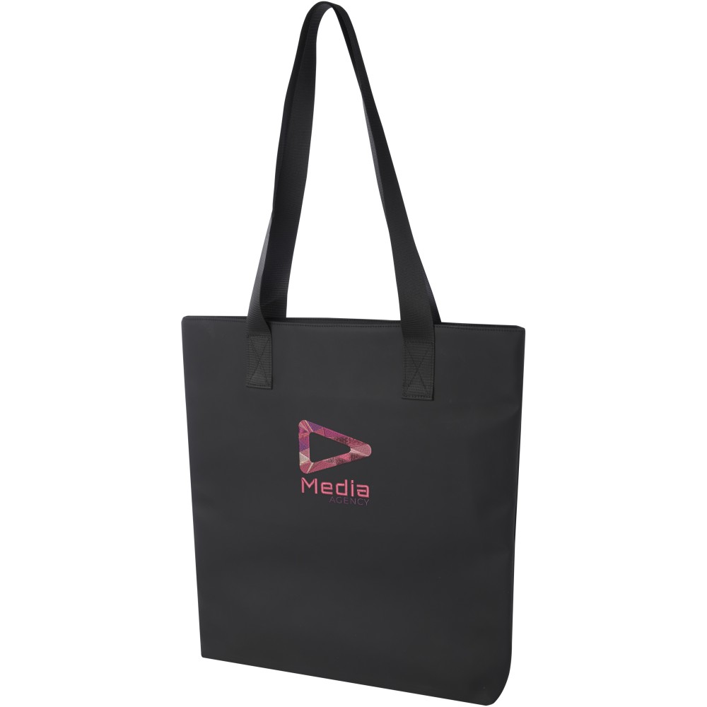 A Turner bevásárlótáska rendkívül tartós és fenntartható anyagokból készült. Külseje 51%-ban GRS újrahasznosított PU műanyagból, bélése pedig 100%-ban GRS rPET anyagból készült. A táska rendelkezik egy külön laptop- vagy tablet zsebbel és egy cipzáras zsebbel a kisebb tárgyak számára. Ez a táska a klasszikus kialakításával és strapabíró anyagaival a kedvenceid közé fog tartozni.