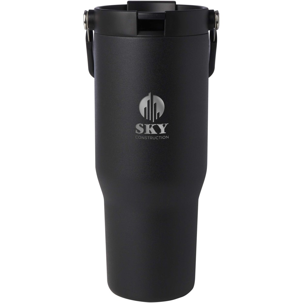 A Bronx 900 ml-es termoszbögre RCS tanúsítvánnyal rendelkező rozsdamentes acélból, dupla falú vákuumszigeteléssel és réz bevonattal készült. A tető kétfunkciós kialakítással rendelkezik: összecsukható ivószárral a kényelmes kortyoláshoz, valamint felpattintható nyílással és lehajtható fogantyúval az egyszerű hordozhatóság érdekében. A legtöbb autós pohártartóba illeszkedik. Újrahasznosított kartondobozban szállítjuk.