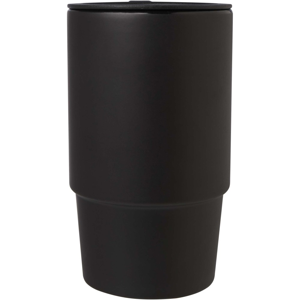 Kerámia bögre nagy, túlméretezett füllel a könnyű fogás érdekében, valamint cseppmentes műanyag tetővel az útközbeni kényelemhez. Külső felülete stílusos, matt kivitelű, a bögre pedig minden nyomtatási eljárás esetén mosogatógépben mosható. Újrahasznosított kartondobozos díszcsomagolásban kerül átadásra. Űrtartalom: 450 ml.