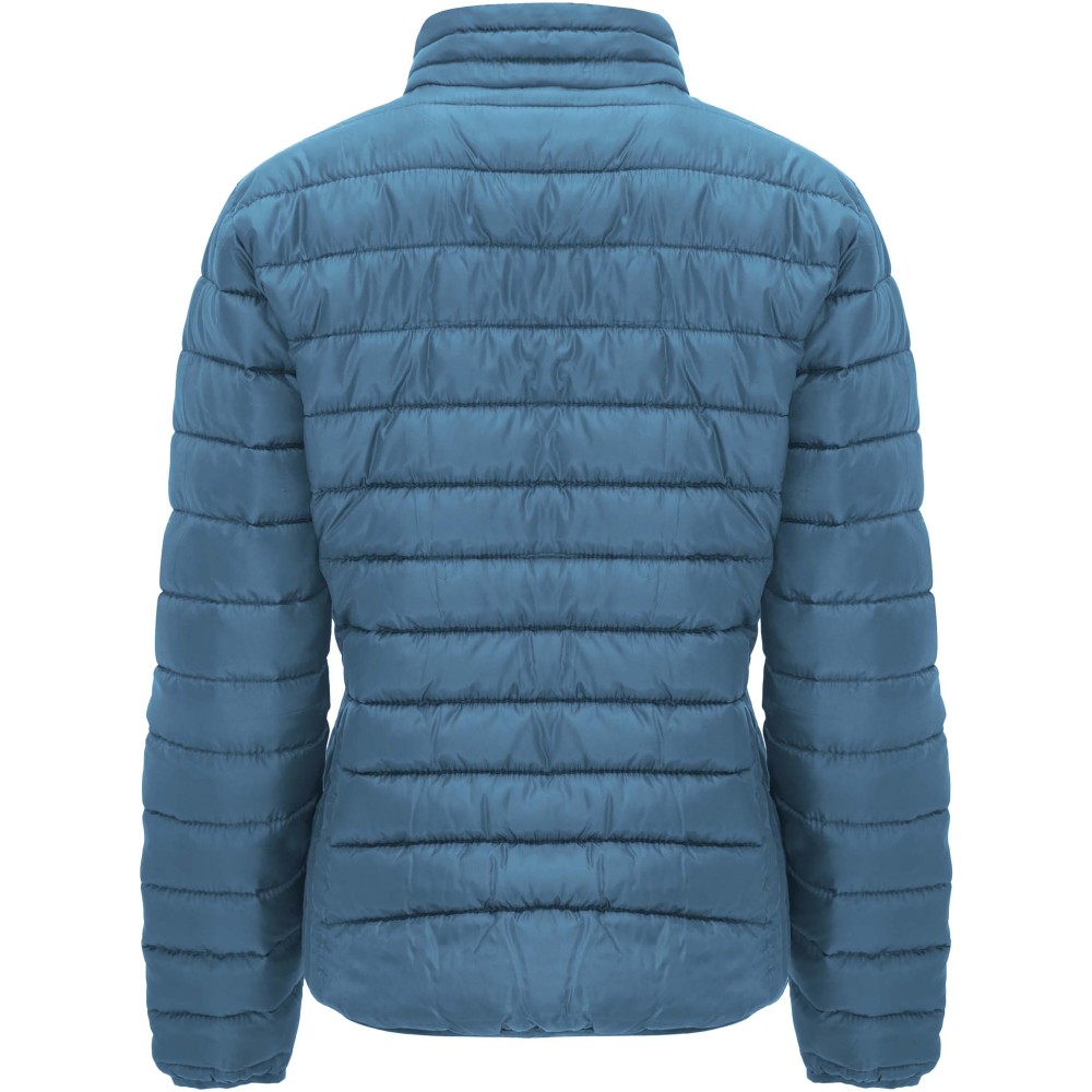 Női, karcsúsított, steppelt dzseki tollszerű tapintású töltettel, tasakkal. Fordított cipzárak, színben illeszkedő állvédővel és cipzárral. Két cipzáras elülső zseb. Gumis szegély a galléron, a kézelőn és az aljon. Kontrasztos színű bélés. Könnyű és összehajtható ruhadarab. Vízálló. Szélálló. 100% poliészter, 290 g/m2. Bélés és töltet: 100% poliészter.
