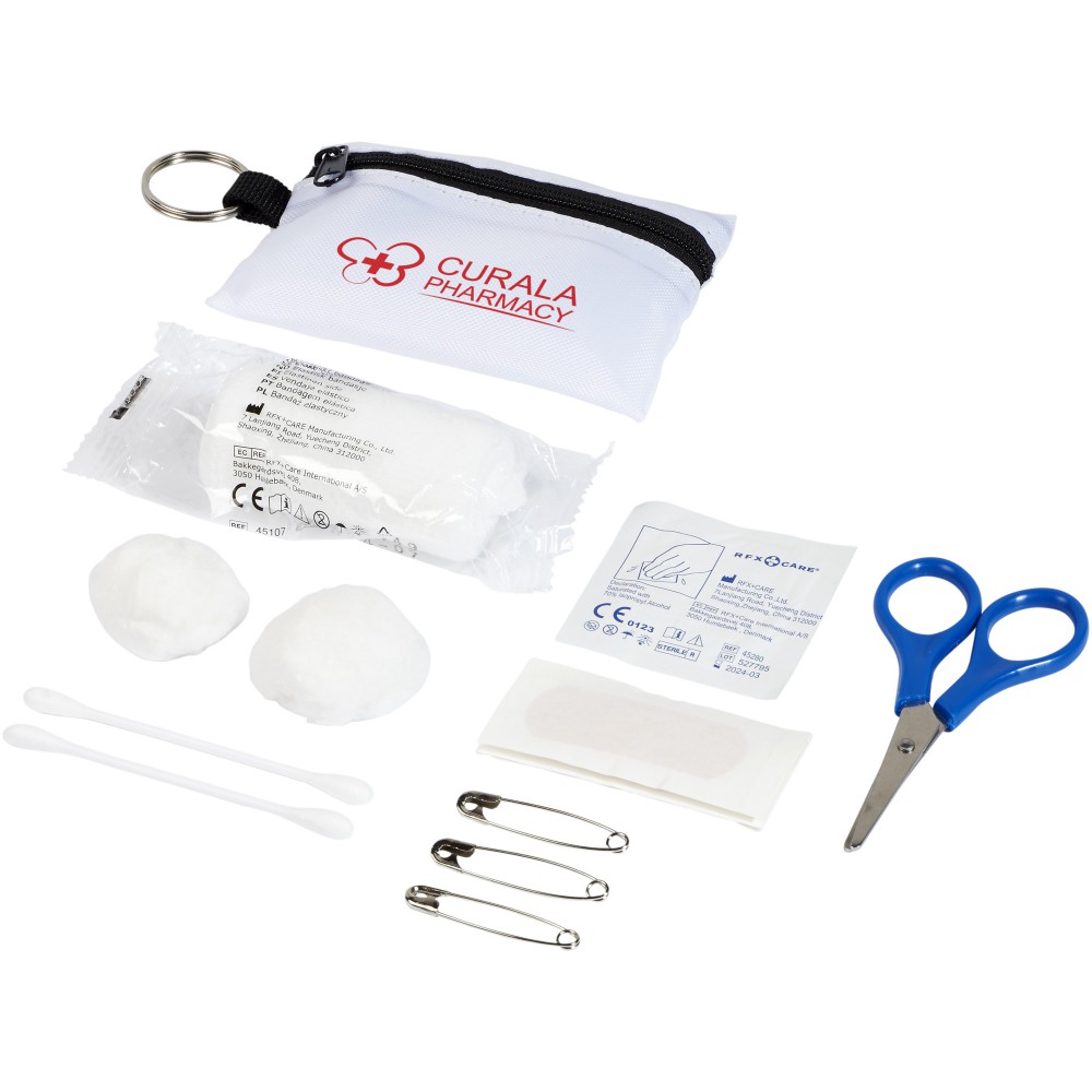 Elsősegélykészlet kulcstartós tokban. Engedély száma: 93/42/EEC. 420D poliészter.