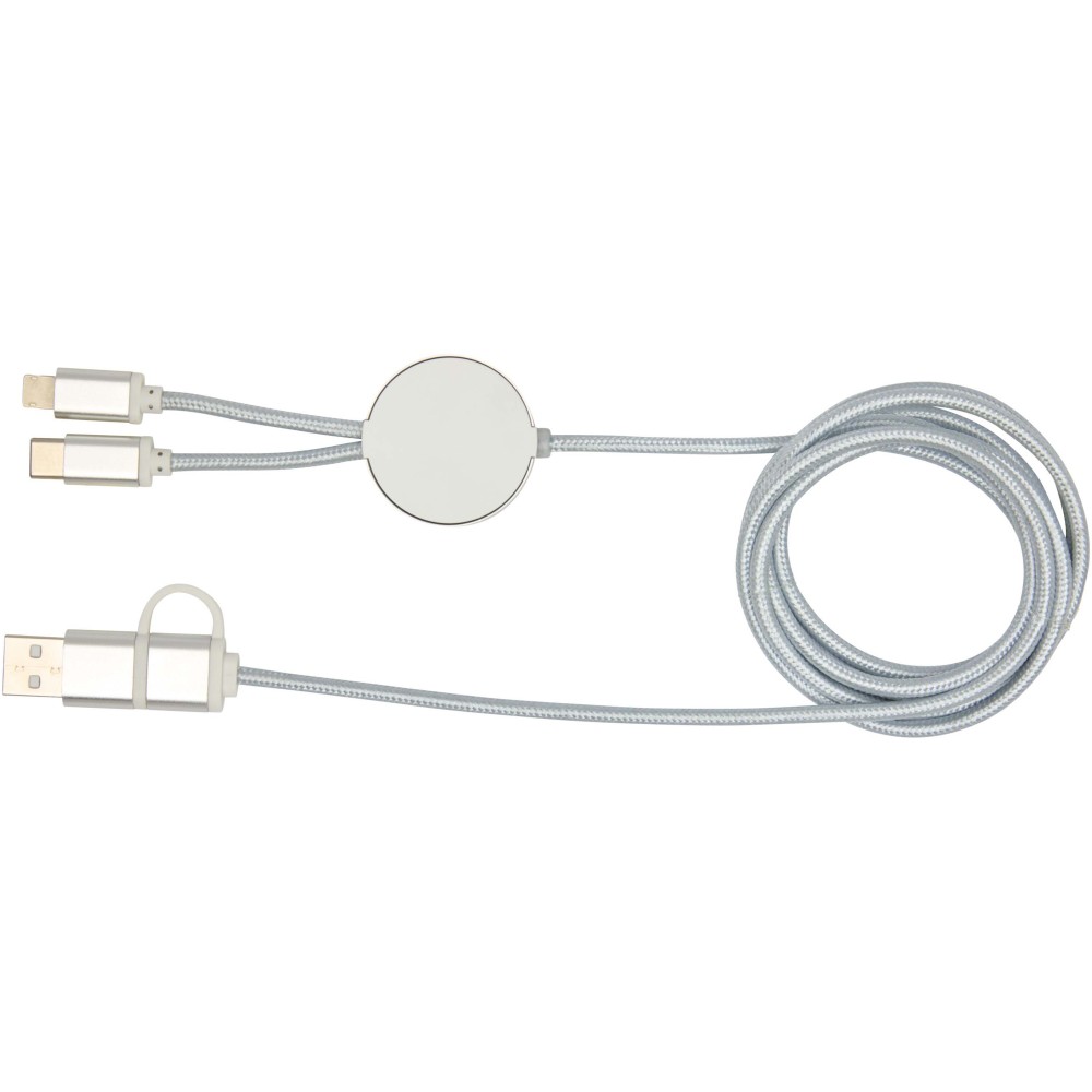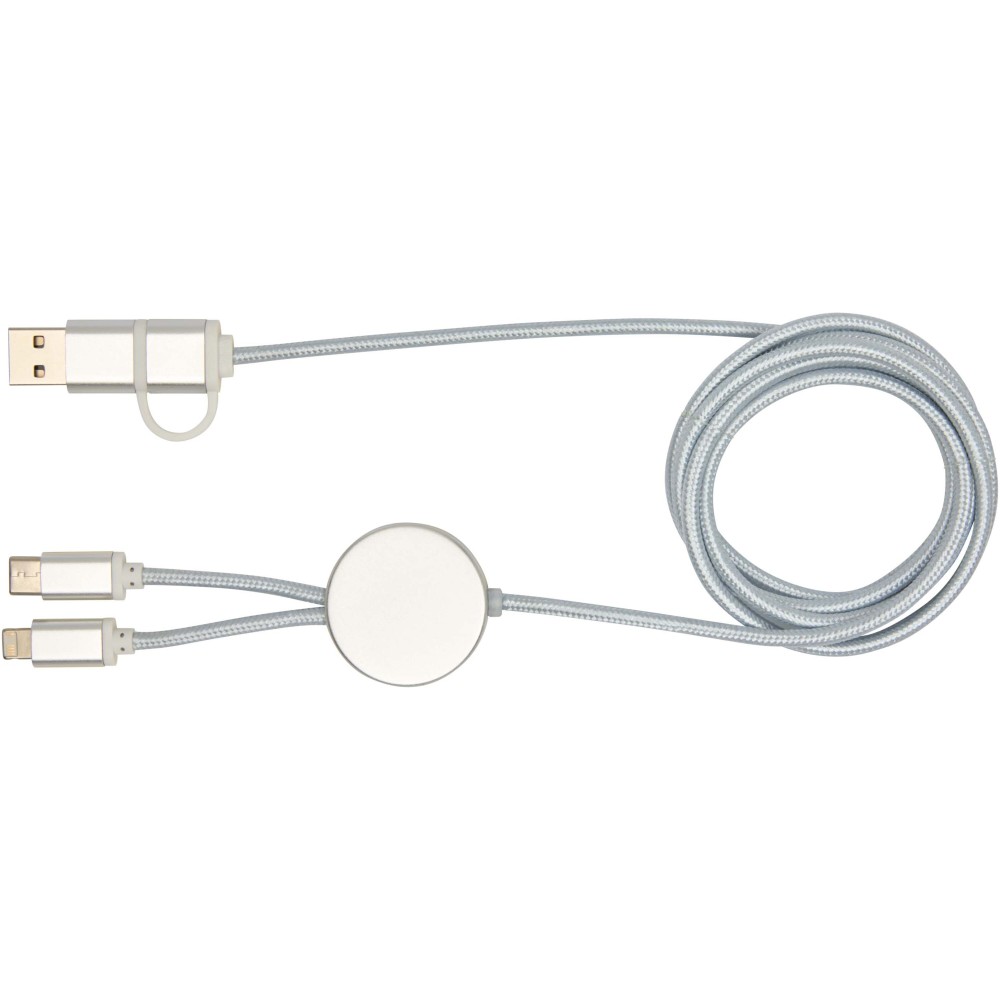 Az Alasia 5 az 1-ben adat- és 27W-os gyorstöltő kábel tartós és elegáns újrahasznosított alumíniumból és műanyagból készült. A kábel USB-A és Type-C bemeneti csatlakozókkal, valamint Type-C és Lightning/Micro USB kombinált kimeneti csatlakozóval rendelkezik. Az USB-A?USB-C kapcsolat maximális teljesítménye 27W, míg az összes többi kapcsolat maximális teljesítménye 15W. Kompatibilis a CarPlay és az Android Auto rendszerekkel. Akár otthon, az irodában vagy útközben használod, az Alasia kábel teljesítményt és stílust garantál. Kábel hossza: 150 cm.