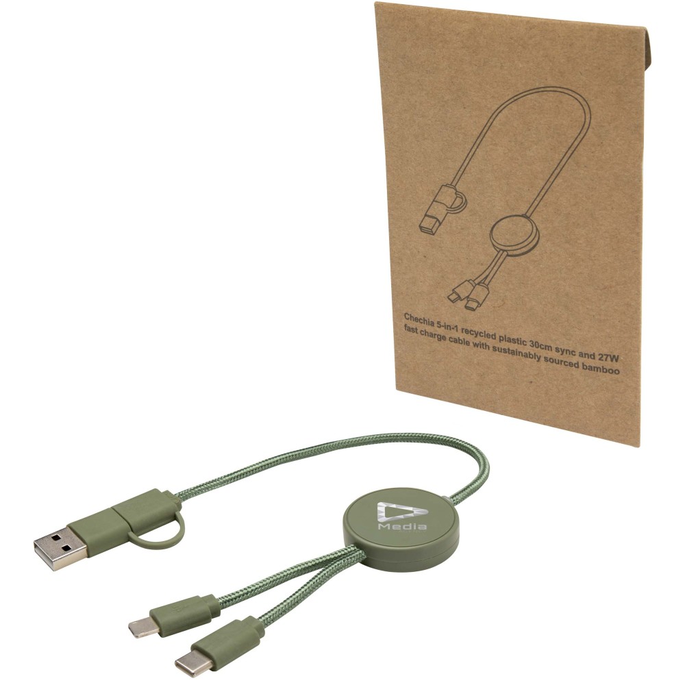 A Citala 5 az 1-ben adat- és 27W-os gyorstöltő kábel újrahasznosított műanyagból készült. A kábel USB-A és Type-C bemeneti csatlakozókkal, valamint Type-C és Lightning/Micro USB kombinált kimeneti csatlakozóval rendelkezik. Az USB-A?USB-C kapcsolat maximális teljesítménye 27W, míg az összes többi kapcsolat maximális teljesítménye 15W. Kompatibilis a CarPlay és az Android Auto rendszerekkel. Akár otthon, az irodában vagy útközben használod, a Citala kábel teljesítményt és stílust biztosít. Kábel hossza: 30 cm.