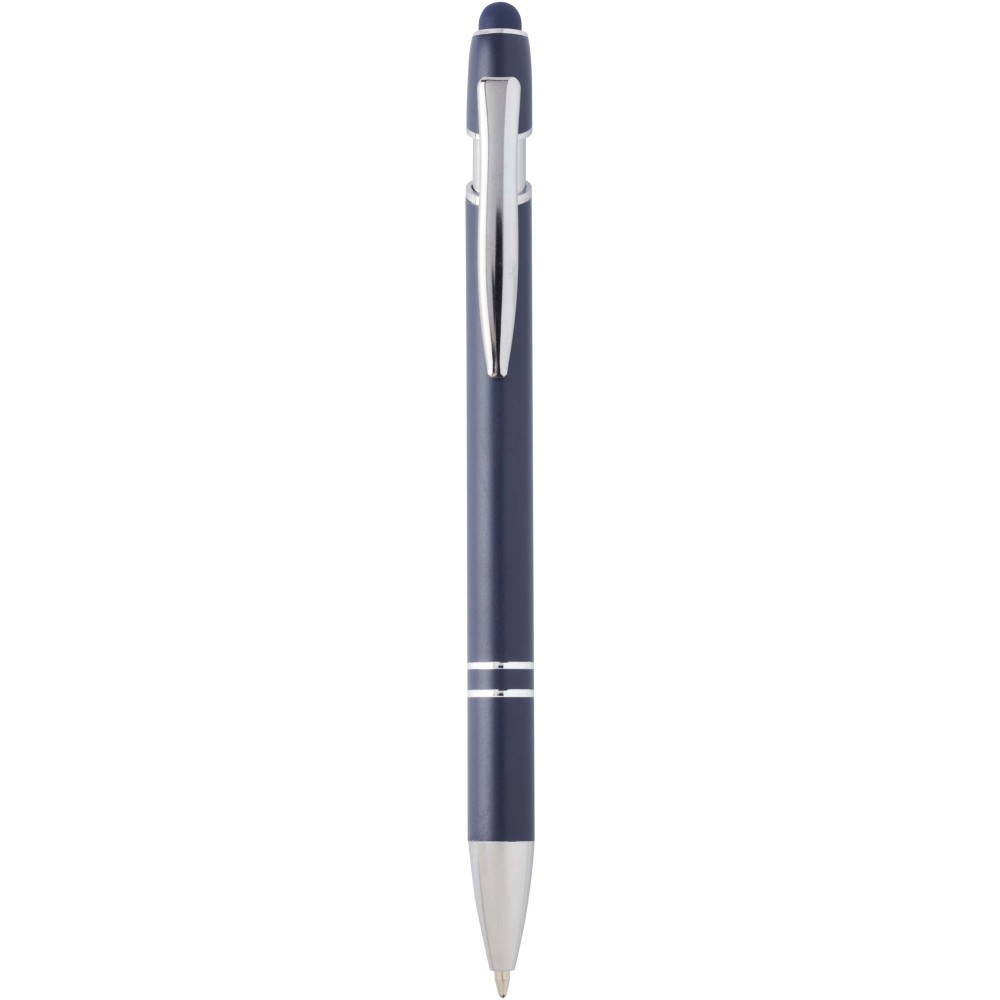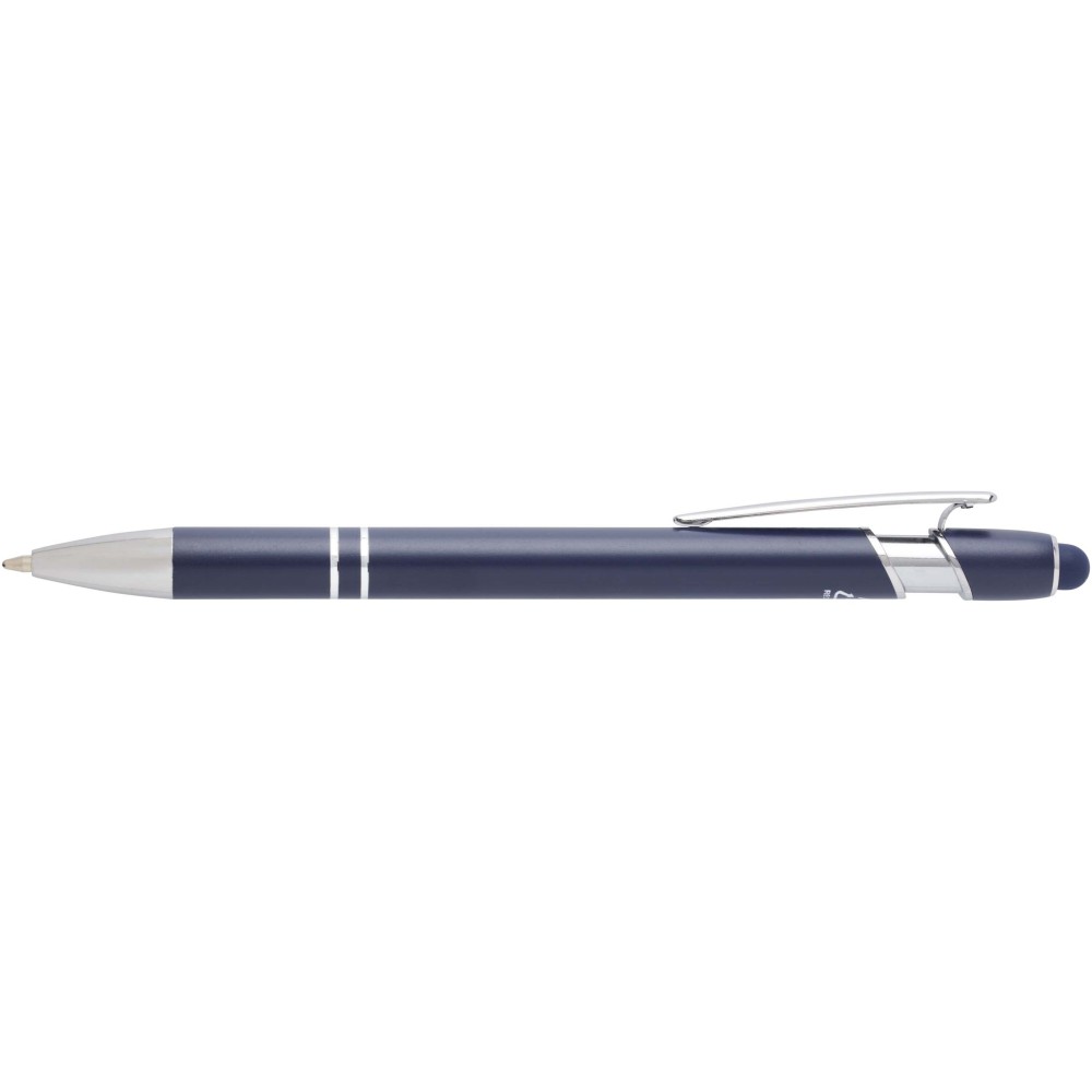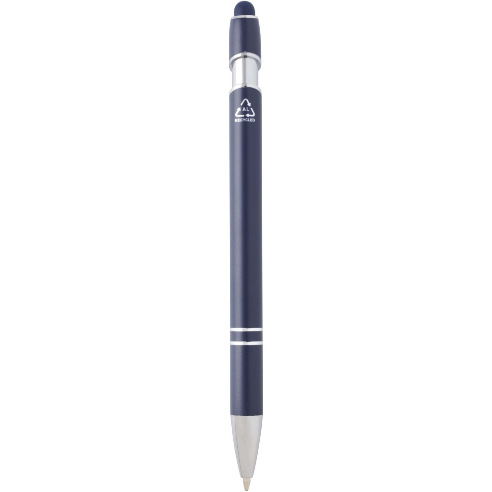 Kish golyóstoll ezüst színben. A toll teste újrahasznosított alumíniumból, az érintőceruza pedig szilikonból készült, így érintőképernyős eszközökhöz is használható. Az újrahasznosított alumínium csökkenti a hulladéklerakók terhelését, segít megőrizni a természeti erőforrásokat, és célja az üvegházhatású gázok kibocsátásának mérséklése. Tinta színe: kék. Íráshossz: 800 méter. Tollhegy mérete: 1,0 mm.