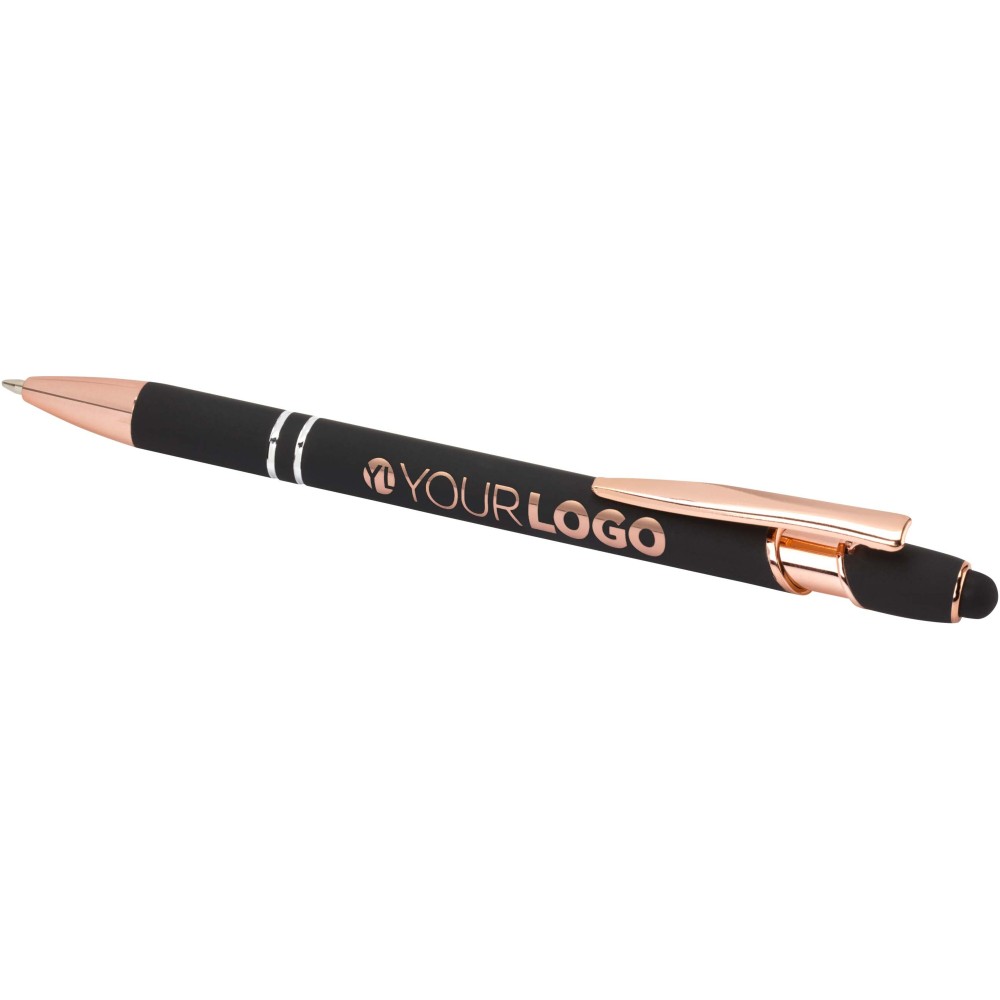 A Nanna golyóstoll rózsaarany bevonattal újrahasznosított alumíniumból készült tolltesttel és szilikon, érintőképernyős véggel rendelkezik. Az újrahasznosított alumínium csökkenti a hulladék mennyiségét a lerakókban, hozzájárul a természeti erőforrások megőrzéséhez és a károsanyag-kibocsátás mérsékléséhez. Tinta színe: fekete. Íráshossz: 800 méter. Tollhegy mérete: 1,0 mm.