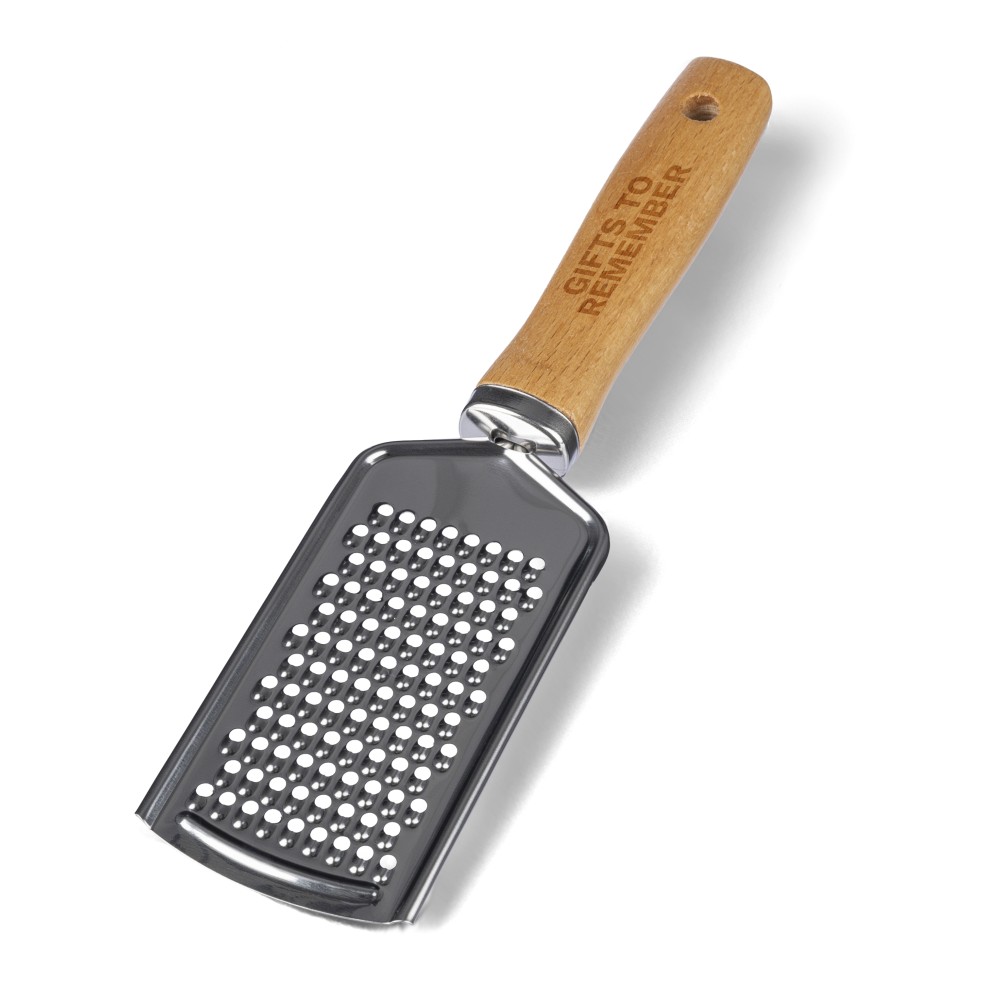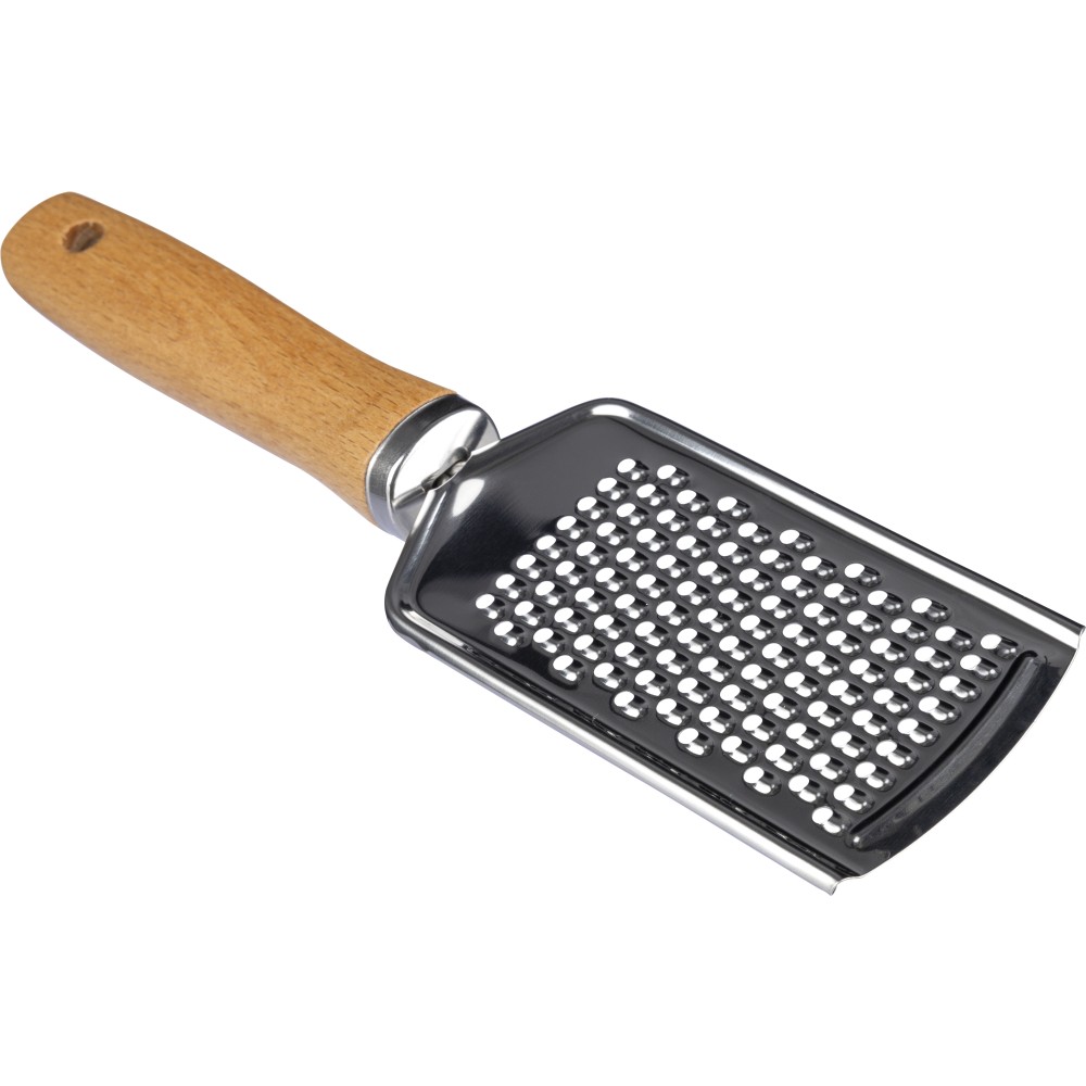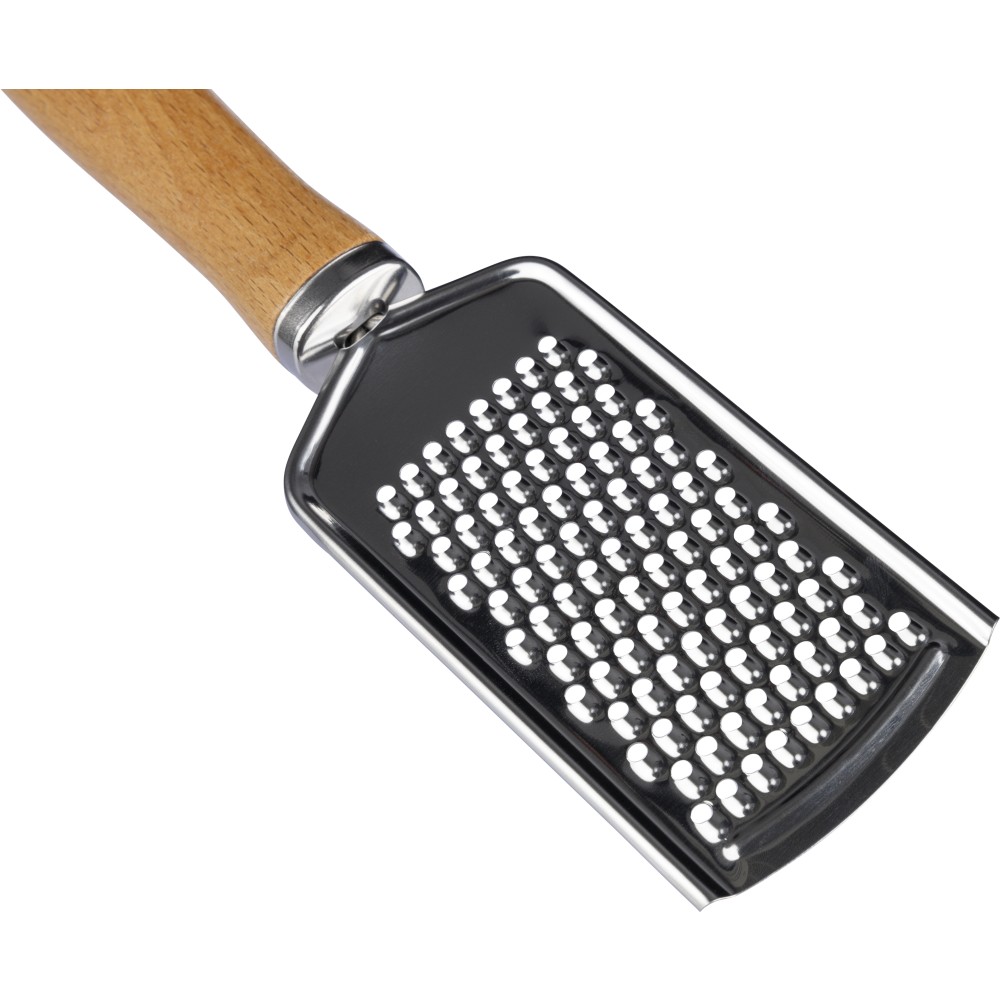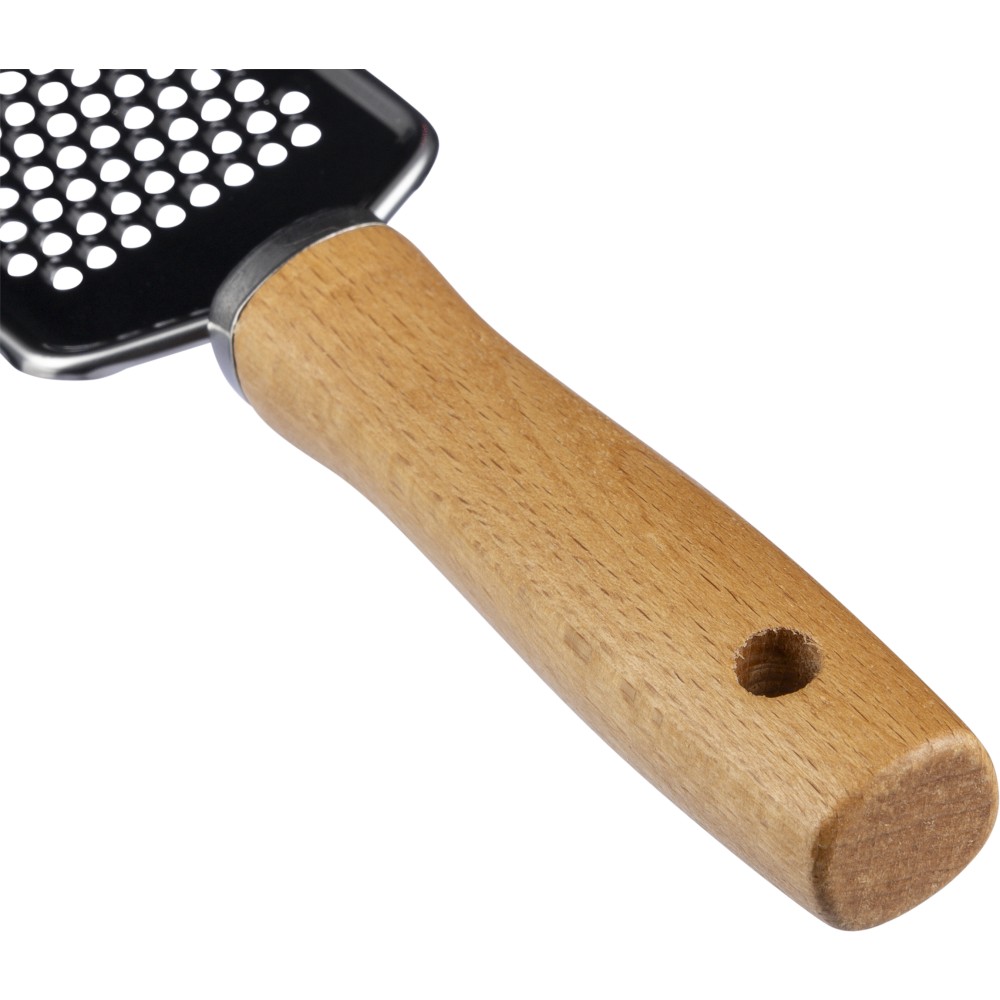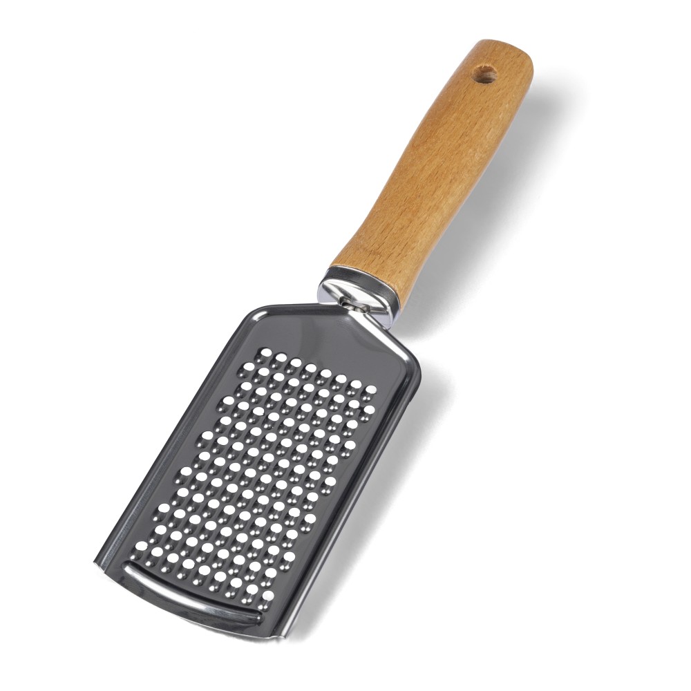 Rozsdamentes acél konyhai reszelő fa nyéllel. Mosogatógépben nem mosható.