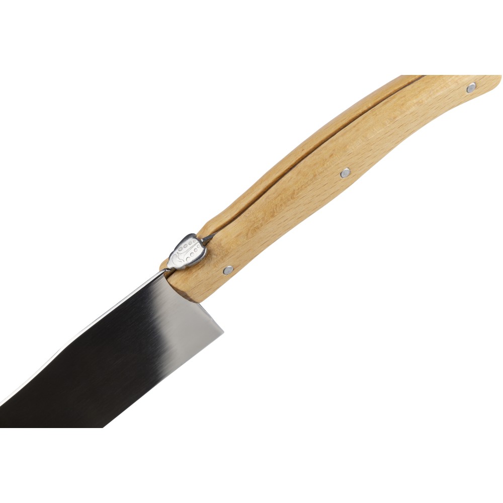 Késkészlet tépőzáras 600D rPET tartóban. 3 db fanyelű, rozsdamentes acél késsel. Belül rPET címkével. Csomagolása barna papírdoboz.
