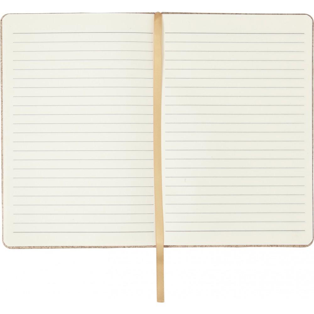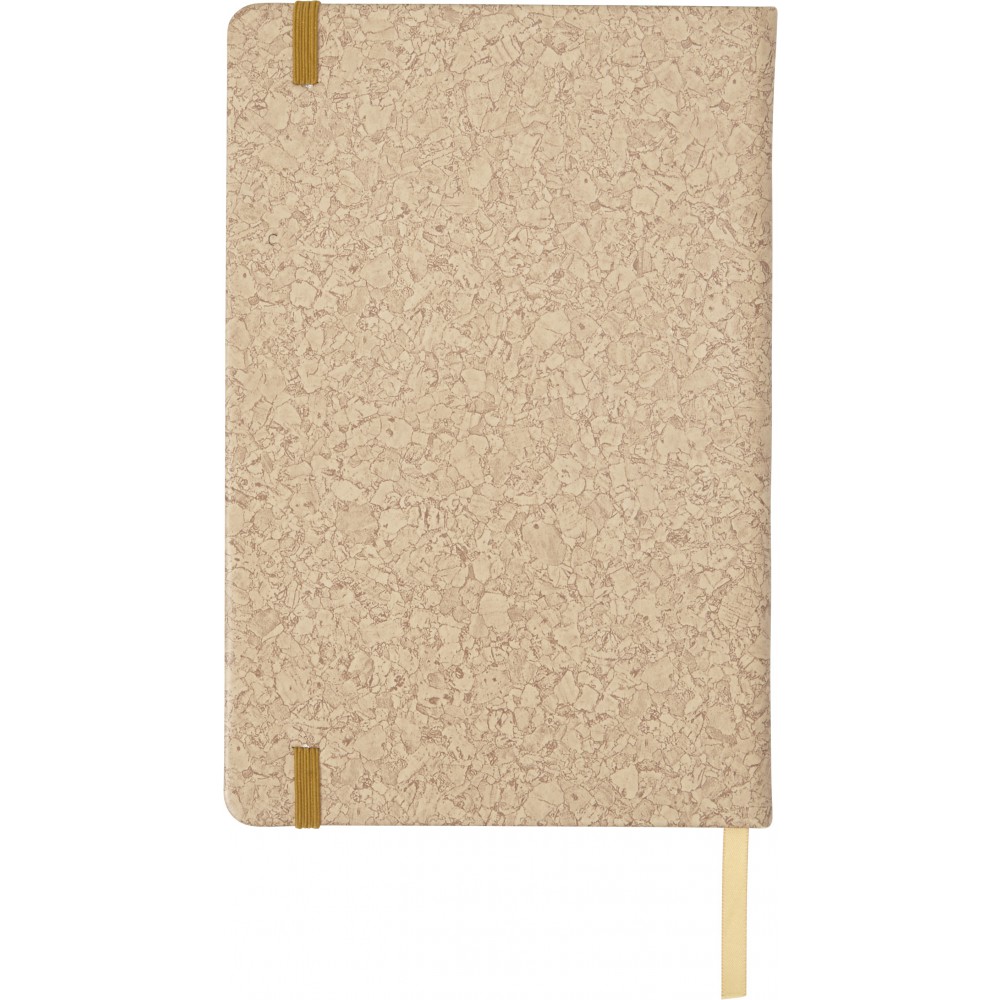 A5 méretű füzet parafa mintázattal, 96 vonalas lappal, színben illeszkedő jelzőszalaggal, gumipánttal. PU.