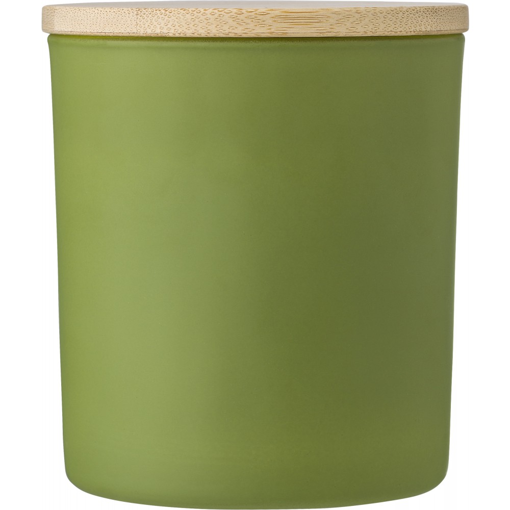 Üveggyertya növényi alapú viasszal és bambusz fedővel. A gyertya főleg növényi viaszt (karnaubaviaszt) tartalmaz, égési ideje körülbelül 33 óra. Négy illat az üveg színétől függően: fahéj (piros), vanília (fehér), szantálfa (fekete) és jázmin (zöld). Egyenként, fehér papírpalástba csomagolva.