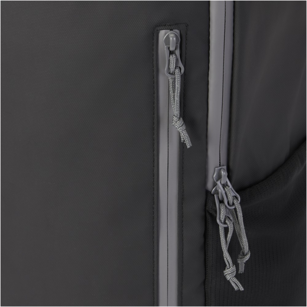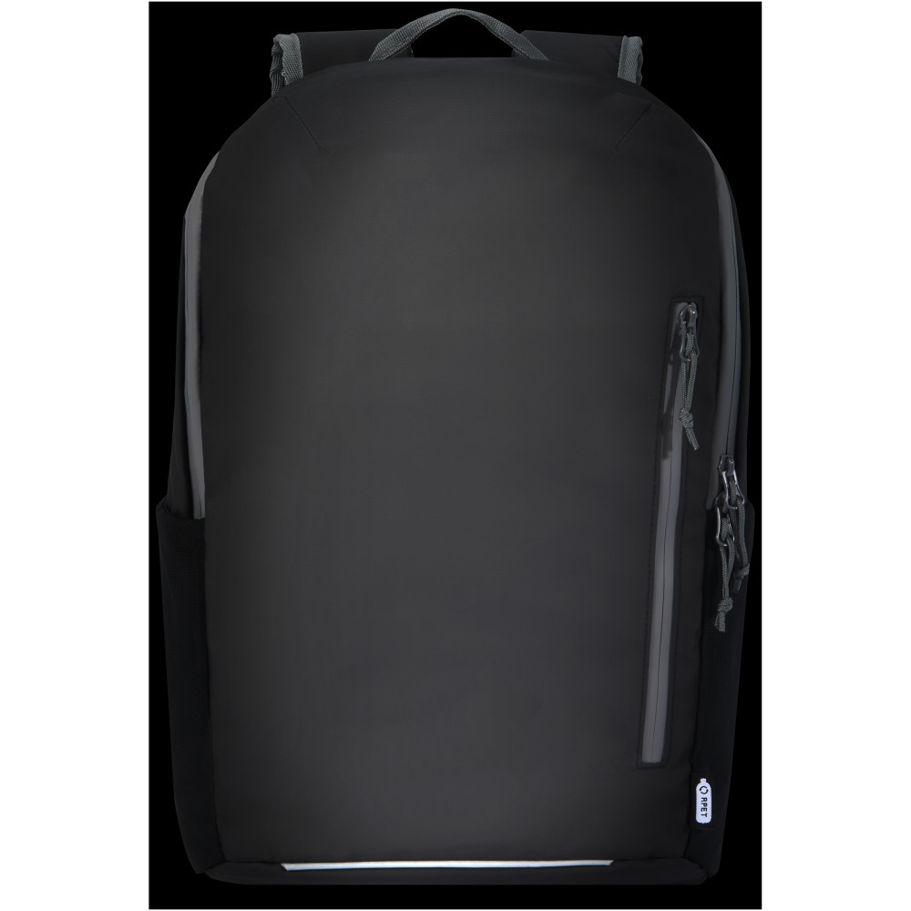Vízálló laptop hátizsák GRS tanúsítvánnyal rendelkező újrahasznosított anyagokból, beleértve a cipzárakat is. Bélelt 15 -os laptoprekesszel rendelkezik, oldalsó nyílással a gyors hozzáférés érdekében, több hálós zsebbel, cipzáras elülső zsebbel és fényvisszaverő csíkokkal a láthatóság érdekében. A formázott és párnázott hátlapnak és az állítható mellkaspántnak köszönhetően még teljesen megrakott állapotban is kényelmesen hordozható. A GRS újrahasznosított anyagai közé tartozik a főszövet, a bélés, a pántok és a cipzárak. Űrtartalom: 21 liter. PVC-mentes.