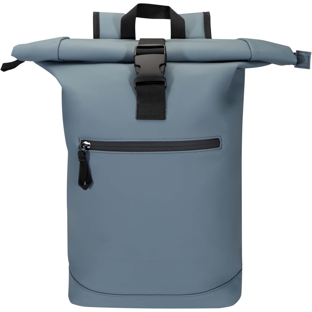 Prémium, újrahasznosított PU bőrből készült, színben harmonizáló RPET béléssel, ez a rolltop hátizsák modern megjelenést és hosszú élettartamot kínál. Vízlepergető felülete megóvja a tartalmát esőtől és nedvességtől, míg a feltekerhető zárórész rugalmas pakolást tesz lehetővé - ideális laptop hátizsákként ingázáshoz, utazáshoz vagy edzőterembe. Belsejében párnázott rekesz található, amely akár 15,6" laptopot is biztonságosan tárol, valamint egy cipzáras zseb a technikai eszközök és mindennapi kellékek rendszerezésére. A külső részen vízálló cipzárral ellátott elülső zseb biztosít gyors és biztonságos hozzáférést, míg a párnázott, állítható vállpántok és a légáteresztő hátpanel egész napos kényelmet nyújtanak.