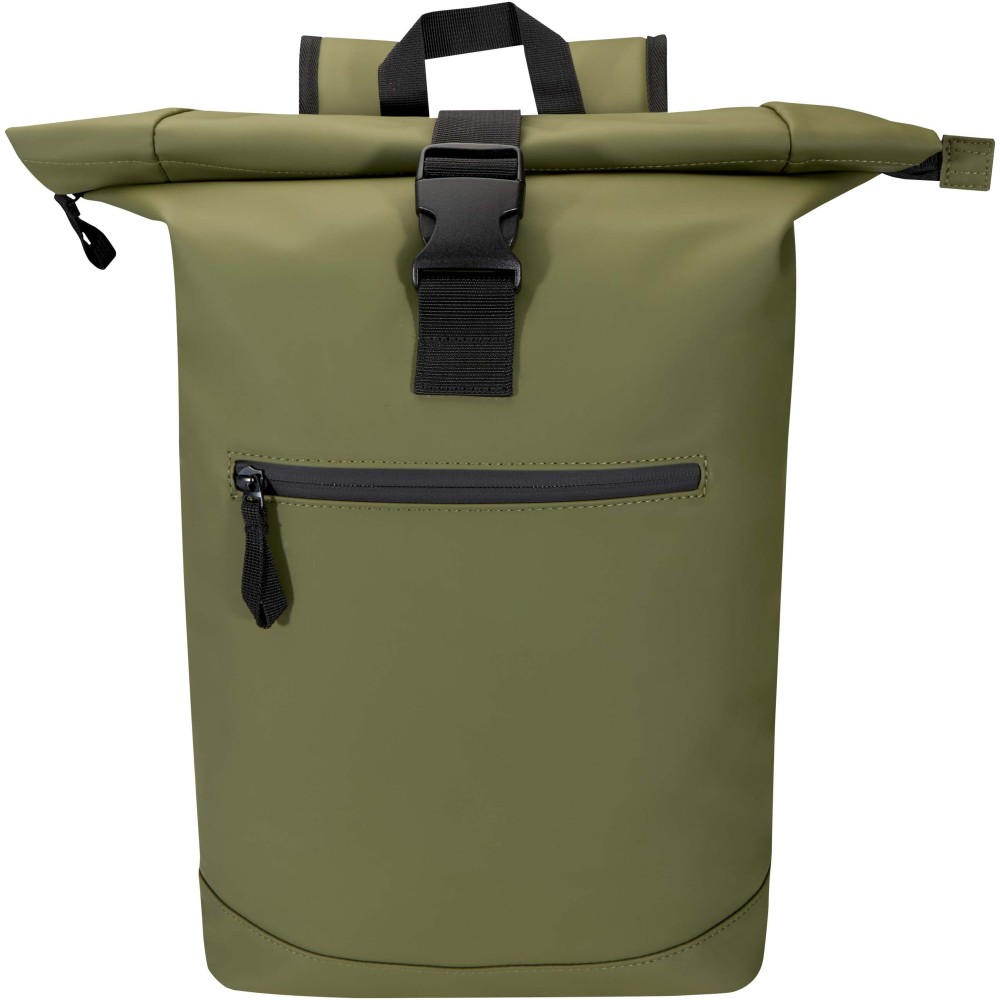 Prémium, újrahasznosított PU bőrből készült, színben harmonizáló RPET béléssel, ez a rolltop hátizsák modern megjelenést és hosszú élettartamot kínál. Vízlepergető felülete megóvja a tartalmát esőtől és nedvességtől, míg a feltekerhető zárórész rugalmas pakolást tesz lehetővé - ideális laptop hátizsákként ingázáshoz, utazáshoz vagy edzőterembe. Belsejében párnázott rekesz található, amely akár 15,6" laptopot is biztonságosan tárol, valamint egy cipzáras zseb a technikai eszközök és mindennapi kellékek rendszerezésére. A külső részen vízálló cipzárral ellátott elülső zseb biztosít gyors és biztonságos hozzáférést, míg a párnázott, állítható vállpántok és a légáteresztő hátpanel egész napos kényelmet nyújtanak.