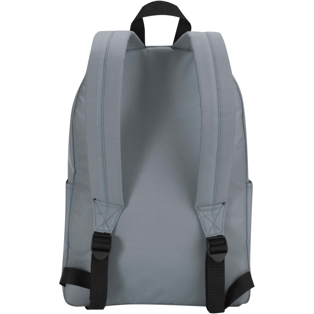 Vízlepergető, GRS tanúsítvánnyal rendelkező, újrahasznosított poliészterből készült a Byron városi laptop hátizsák, amely ideális választás munkába, iskolába vagy városi kiruccanásokra. Karcsú kialakítása 16 literes kapacitást kínál, valamint külön párnázott rekeszt akár 14" laptop számára. Belsejében praktikus rendszerező zsebek segítenek rendben tartani a felszerelést, míg két oldalsó zseb és egy cipzáras elülső zseb biztosít gyors hozzáférést a legfontosabb dolgokhoz. Akár ingázol, akár a várost fedezed fel, ez a kényelmes laptop hátizsák minden lépésnél stílust, tartósságot és funkcionalitást nyújt.