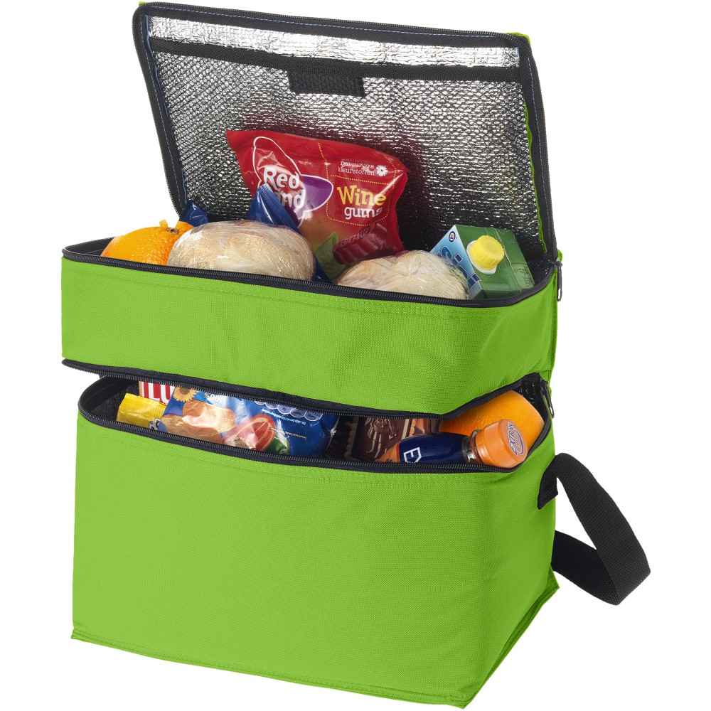 Az Oslo hűtőtáskával bármikor és bárhol hűtött italokat és harapnivalókat biztosíthat. A hűtőtáska két különálló cipzáras rekesszel rendelkezik. A felső része tökéletes az apró falatok tárolására, az alsó része pedig a nagyobb élelmiszerek tárolására. A vállpánt állítható, így a táskát mindenki könnyen hordozhatja. A hűtőtáska 600D poliészterből készült, amely egy nagy teherbírású és tartós szövet.