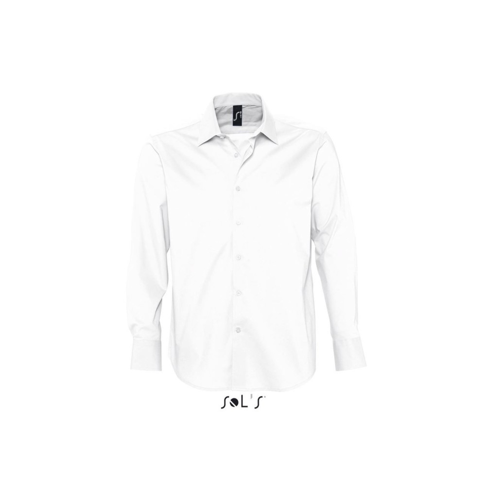 97% pamut és 3% elasztán, sztreccs puplin anyag. Színben illeszkedő gombok, állítható, kétgombos kézelő. 140 g/m2.