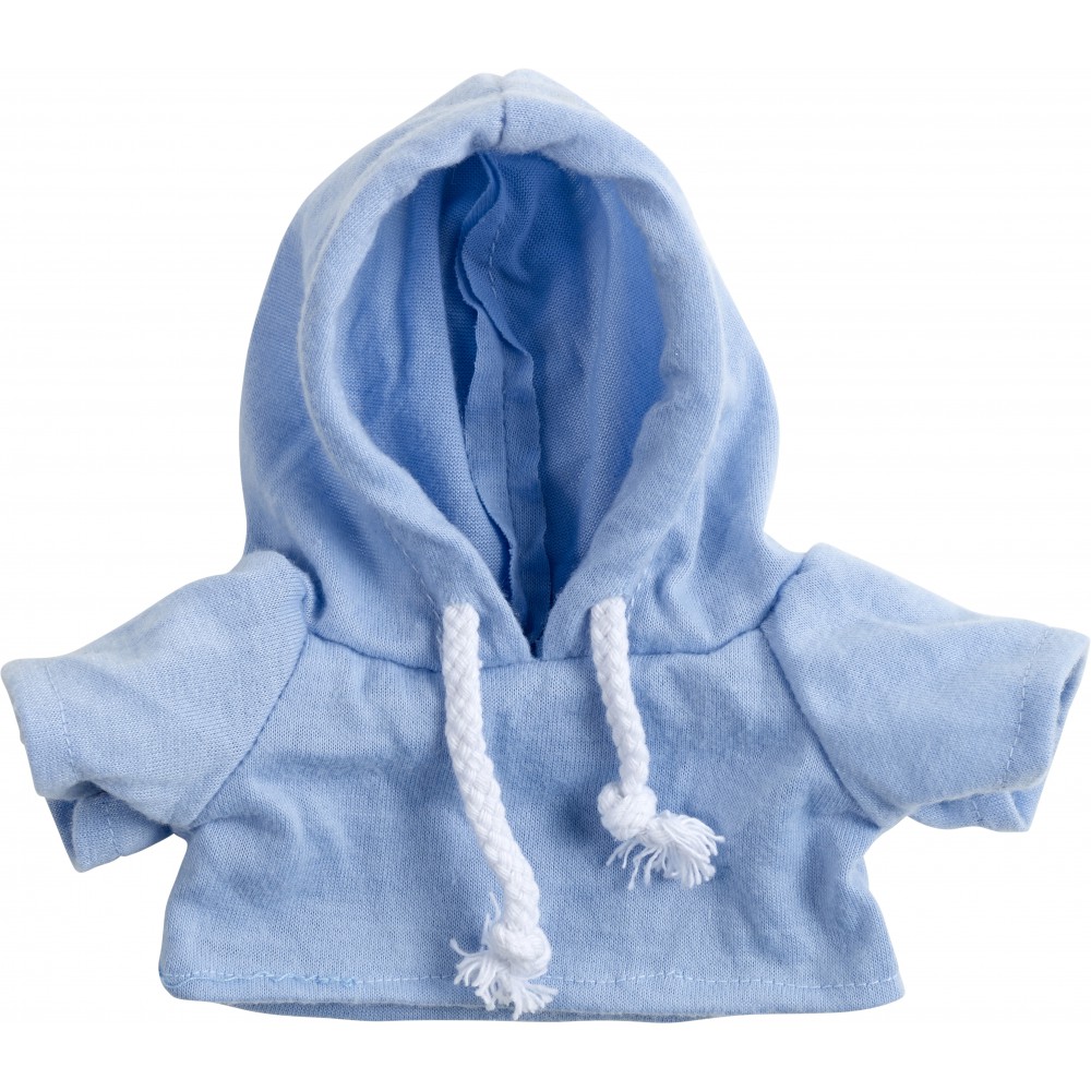 Plüssmackó kapucnis pólóban, világoskék
