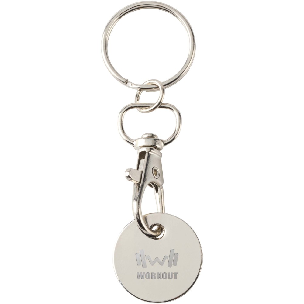 A Rory kulcstartó színes bevásárlókocsi érmével a legtöbb szupermarket bevásárlókocsijához illeszkedik, lehetővé téve azok kinyitását érme vagy zseton nélkül.