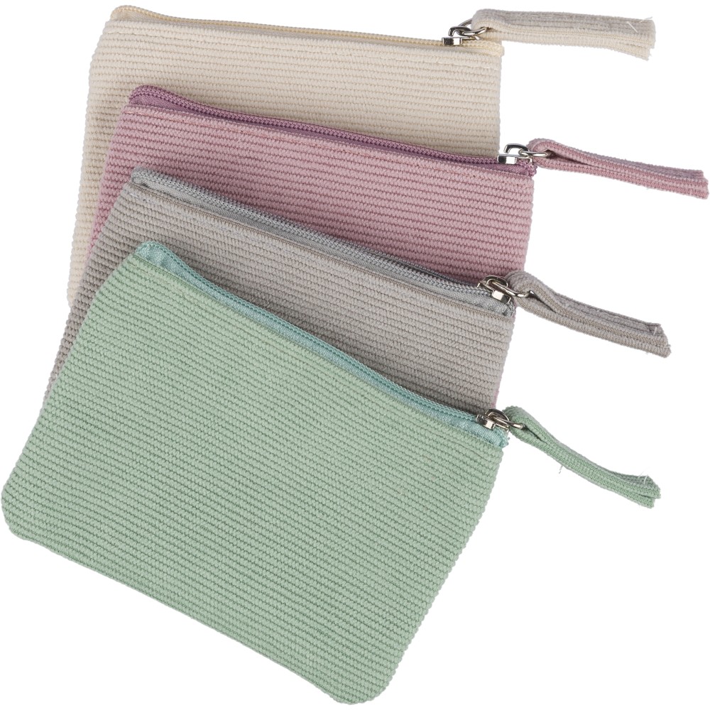 Kordbársony anyagból készült kulcstartó tárca biztonságos cipzáras záródással. Kulcskarika nélkül.