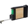 Mérőszalag bambusz részletekkel és beépített vízmértékkel. 3 méteres, 12 mm széles fém szalaggal. Tartalmaz 5 bitfejet, így csavarhúzóként is használható. MID tanúsítvánnyal rendelkezik. Egyenként barna kartondobozba csomagolva. Anyaga: ABS.