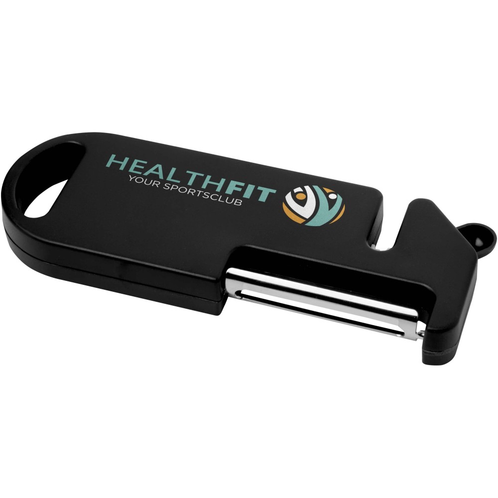 Ez a sokoldalú konyhai eszköz négy alapvető funkciót egyesít egy kompakt kialakításban. Újrahasznosított műanyagból készült, és tartalmaz hámozót, sörnyitót, késélezőt, valamint hegyes véget a burgonya foltjainak eltávolításához. Akasztójának köszönhetően könnyen tárolható. Praktikus és helytakarékos megoldás, amely nélkülözhetetlen minden szakács számára.