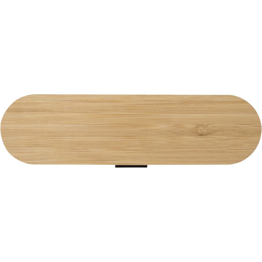 Újrafelhasználható evőeszközkészlet bambusz fedéllel, amely tartalmaz egy villát, kést, kanalat, szívószálat és egy szívószál tisztító kefét - ideális megoldást kínál az útközbeni étkezésekhez. Kompakt kialakításának és egyszerű tisztíthatóságának köszönhetően tökéletes kiegészítő uzsonnás dobozok mellé, utazáshoz vagy irodai használatra.