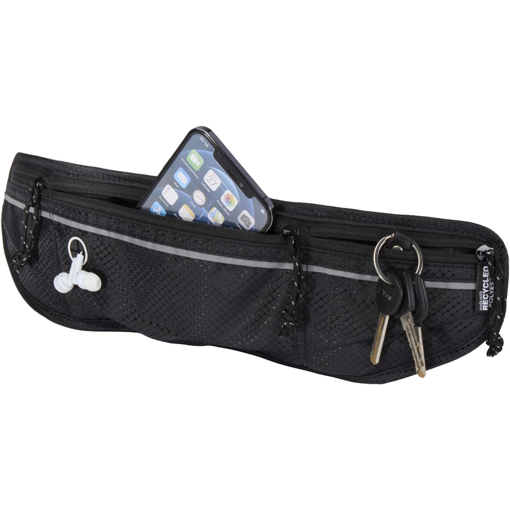 A Nomad övtáska futáshoz - GRS tanúsítvánnyal rendelkező, újrahasznosított ripstop anyagból készült, vízlepergető felülettel, GRS tanúsítvánnyal rendelkező RPET béléssel és fényvisszaverő elemekkel. Kompakt és könnyű megoldás futáshoz, túrázáshoz vagy más szabadtéri tevékenységekhez. Három cipzáras zsebbel rendelkezik, hogy a telefon, fülhallgató, kulcsok és egyéb tárgyak rendezetten és elkülönítve legyenek tárolhatók. A fényvisszaverő részletek növelik a láthatóságot kora reggeli vagy esti használat során. Hátoldala könnyű, nedvességelvezető hálóból készült, amely fokozza a szellőzést és csökkenti az izzadság felgyülemlését. Az állítható, rugalmas derékpánt biztosítja a stabil és kényelmes illeszkedést mozgás közben.