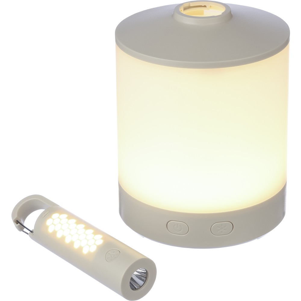 Multifunkciós lámpa kempingezéshez. Levehető elemlámpával, karabinerrel, 4 világítási móddal. 8-féle színben világít, melyek közül a fehér kétféleképpen is működtethető. A másik 7 szín váltakozóra is beállítható a gomb nyomvatartásával. Az elemlámpa 800 mAh-s, a kempinglámpa 2400 mAh-s akkumulátorral rendelkezik. C-típusú csatlakozók. Csomagolása papírdoboz.