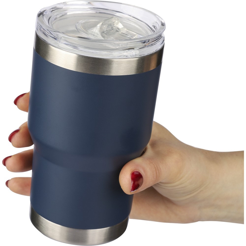 Újrahasznosított rozsdamentes acél kávésbögre, 350 ml. A belső kerámia bevonattal rendelkezik, a külső 201-es rozsdamentes acél, a belső fal pedig 304-es rozsdamentes acél. A bögrén gravírozott újrahasznosított logó található. Csomagolása barna papírdoboz.