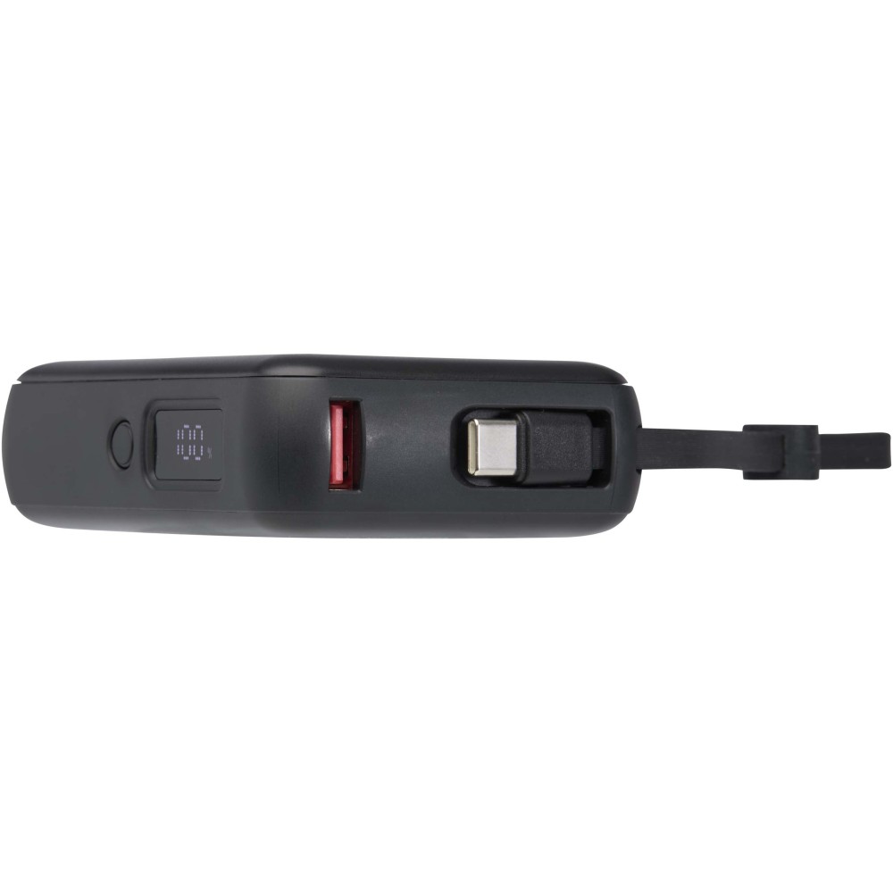 Az Acrux 10 000 mAh powerbank újrahasznosított műanyagból készült, és gyors, kényelmes töltést biztosít bárhol. Egy 35W USB-C be- és kimeneti porttal, valamint egy 18W USB-A porttal rendelkezik, továbbá beépített USB-C és Lightning kábellel, így nincs szükség külön tartozékokra az eszközök töltéséhez. A digitális kijelző egy pillantással mutatja a töltöttségi szintet, így könnyen nyomon követhető az akkumulátor állapota. Tökéletes választás okostelefonok és tabletek egész napos üzemeltetéséhez.