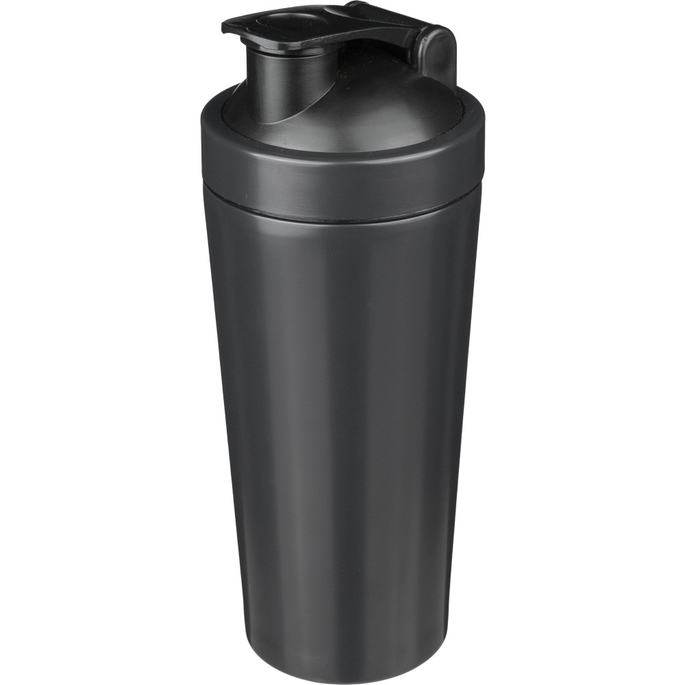 Újraacél sportpalack és shaker, szimplafalú, 750 ml, fekete