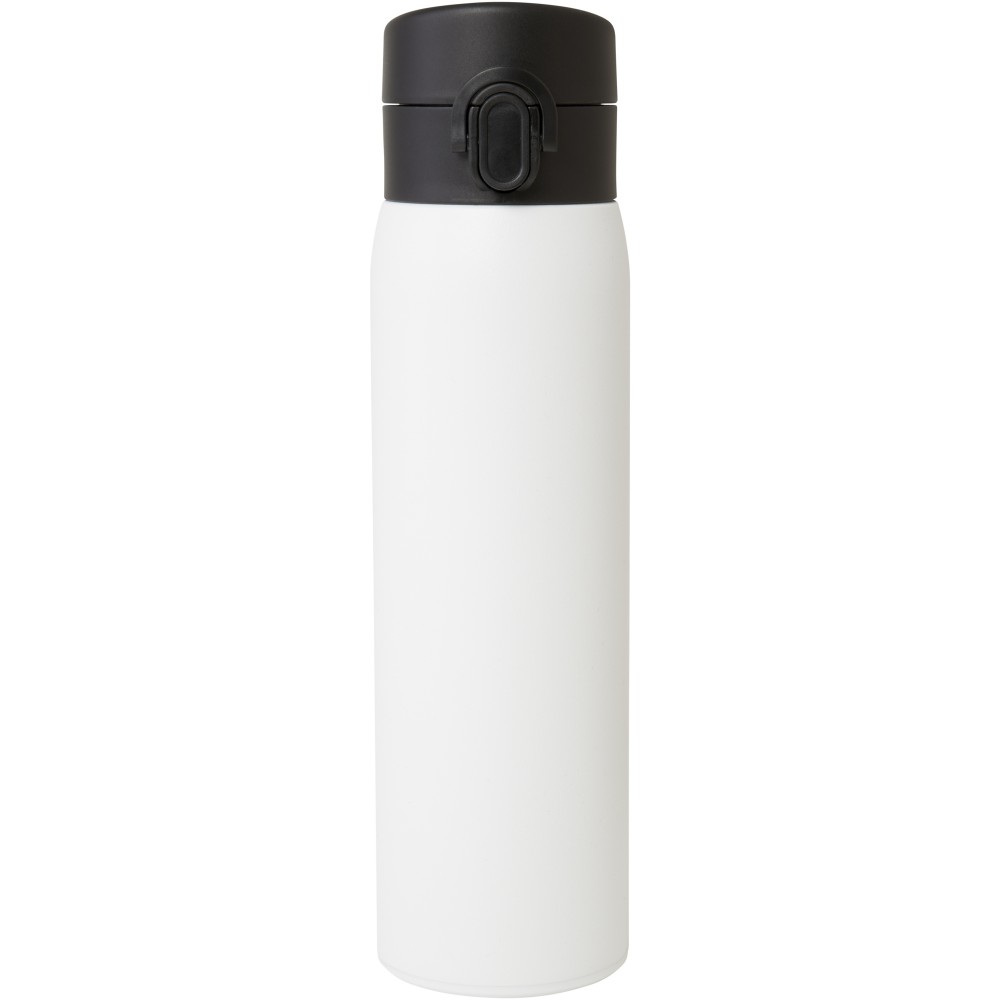 Stílusos, RCS tanúsítvánnyal rendelkező újrahasznosított rozsdamentes acélból készült, szigetelt palack gombos nyitómechanizmussal. A flaska szivárgásmentes és a réz vákuumszigetelésnek köszönhetően az italokat több órán keresztül forrón vagy hidegen tartja. Űrtartalom: 450 ml. Újrahasznosított kartonból készült díszdobozban szállítjuk.