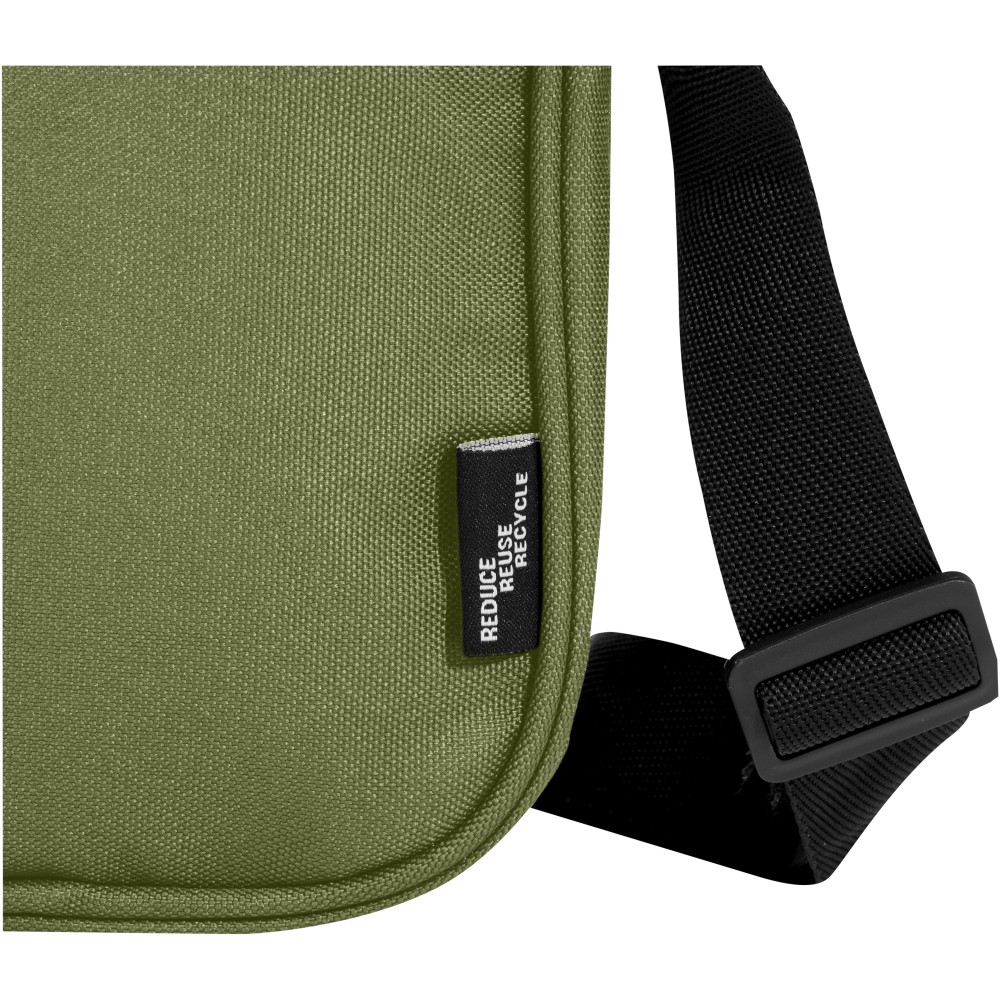 Praktikus és vízlepergető válltáska GRS újrahasznosított poliészterből. Egy cipzáras rekesszel és egy belső zsebbel rendelkezik, hogy a mindennapi eszközeid biztonságban legyenek. Egy cipzáras elülső zsebbel a kulcsok és az értékes kiegészítők számára, valamint egy nyitott zsebbel a hátoldalon a gyors tárolás érdekében. Az állítható, kiváló minőségű vállpántoknak köszönhetően a Byron válltáska tökéletes a mindennapi használatra, minimális ökológiai lábnyom mellett. PVC-mentes.